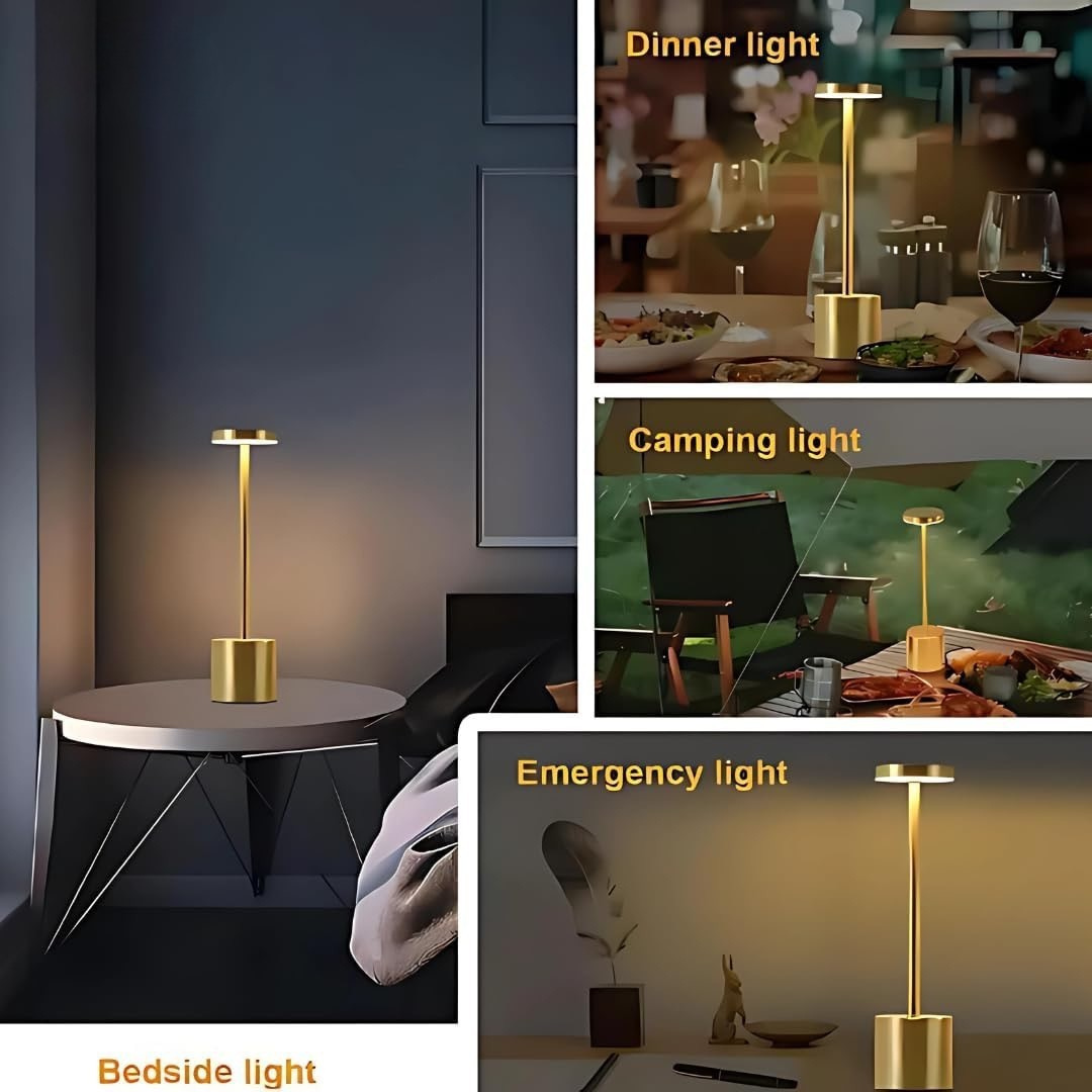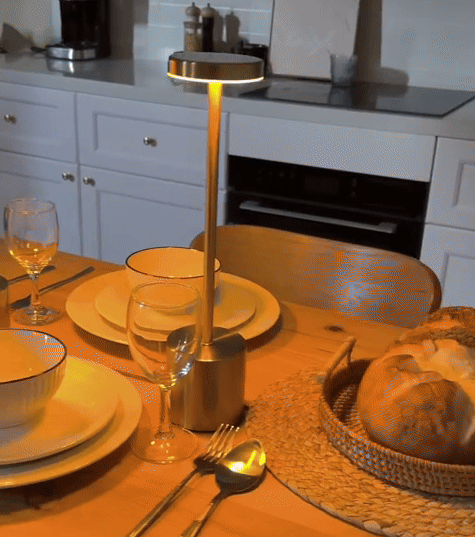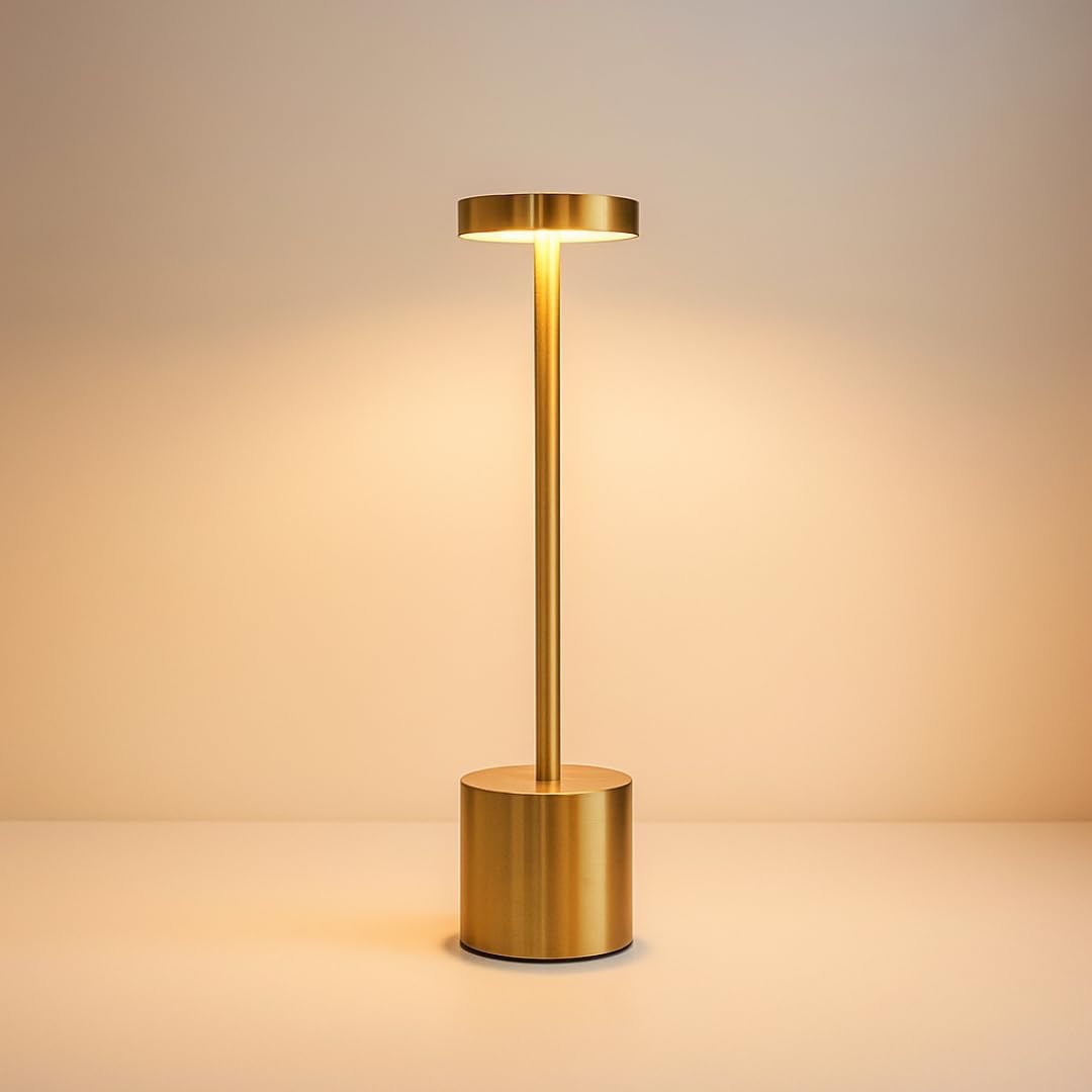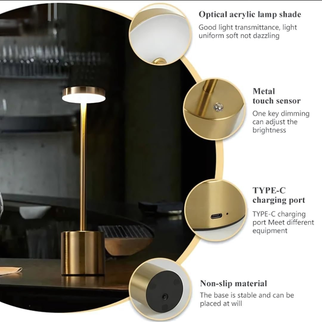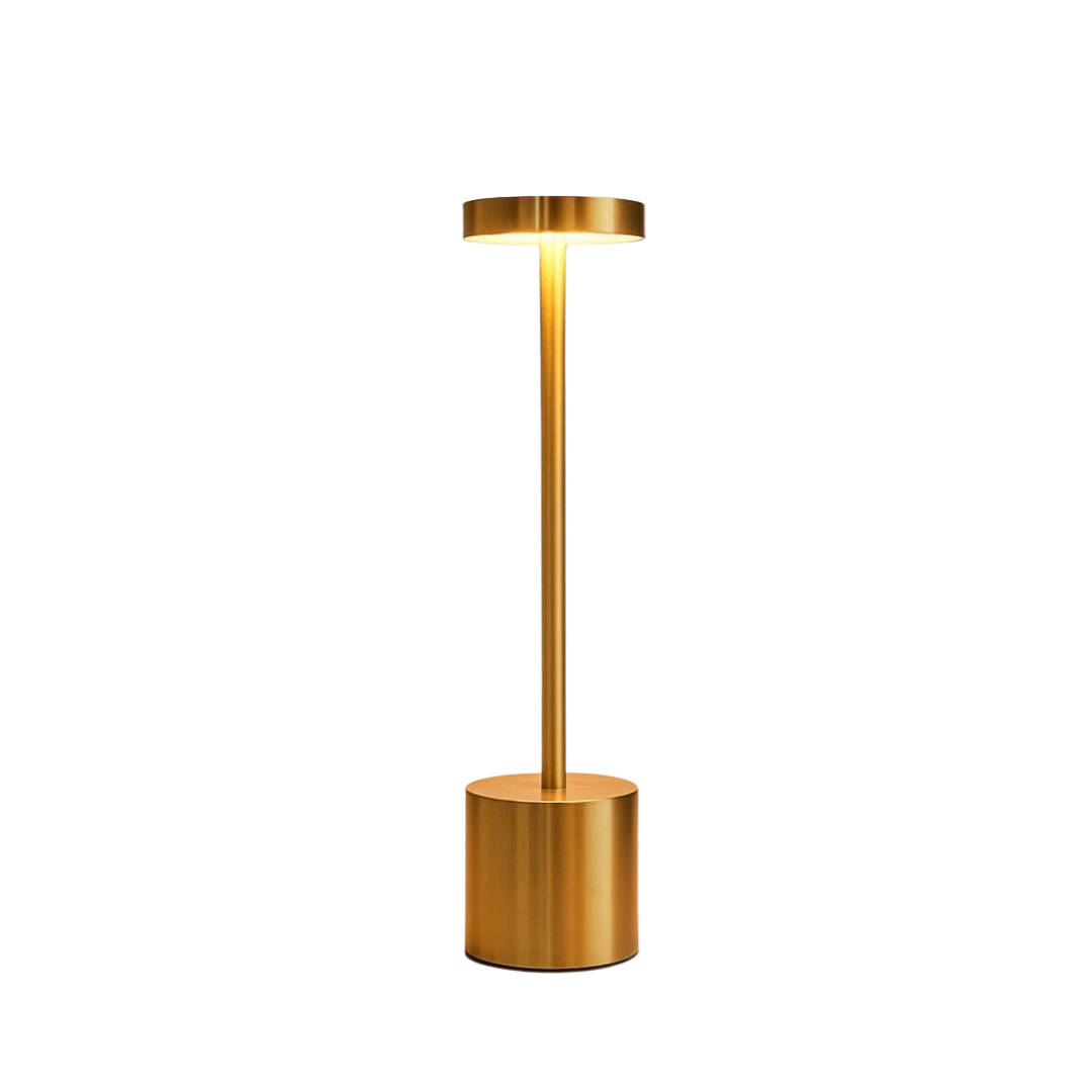 Izdelana iz nerjavečega jekla z elegantnim okroglim senčnikom ta minimalistična svetilka združuje eleganco in praktičnost. Kompaktna in lahka zasnova omogoča enostavno premikanje, medtem ko polnilna baterija zagotavlja prilagodljivo, brezžično uporabo kjerkoli potrebujete dodatno svetlobo.