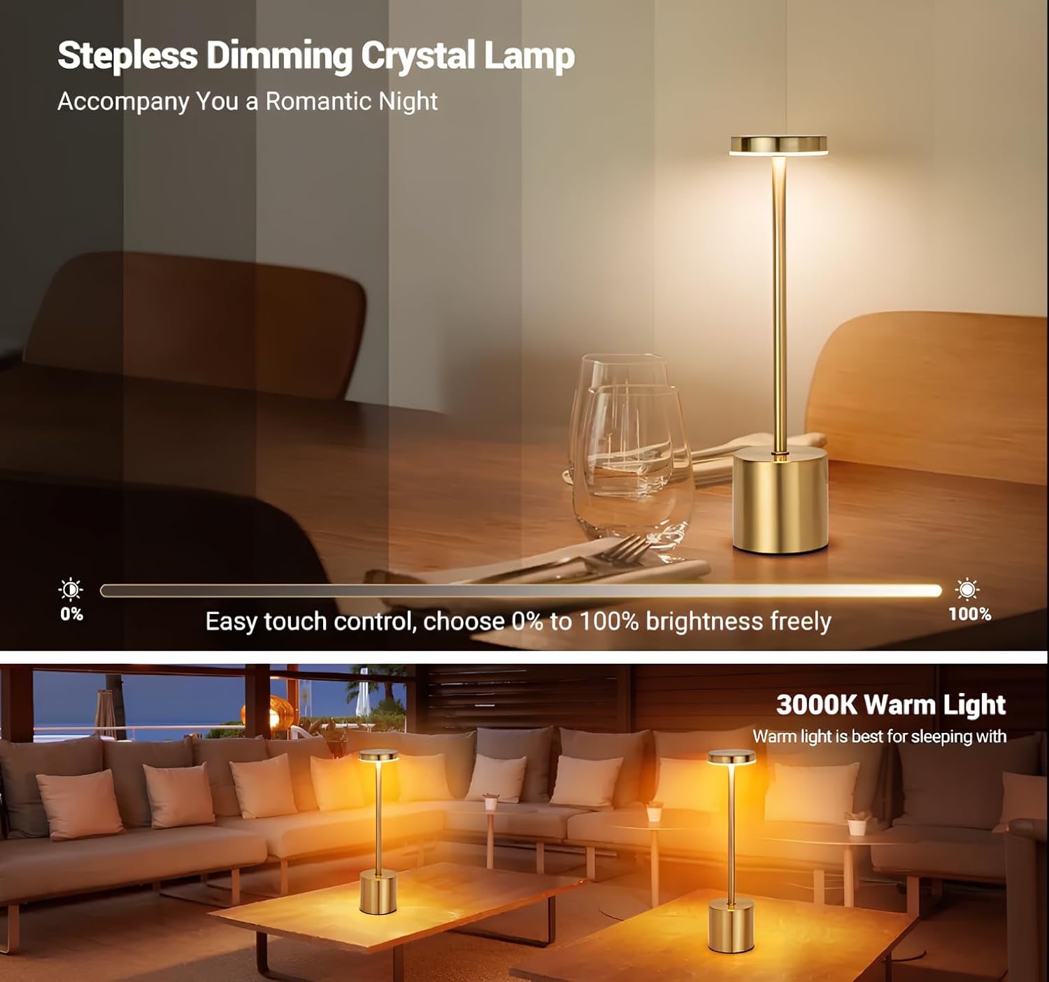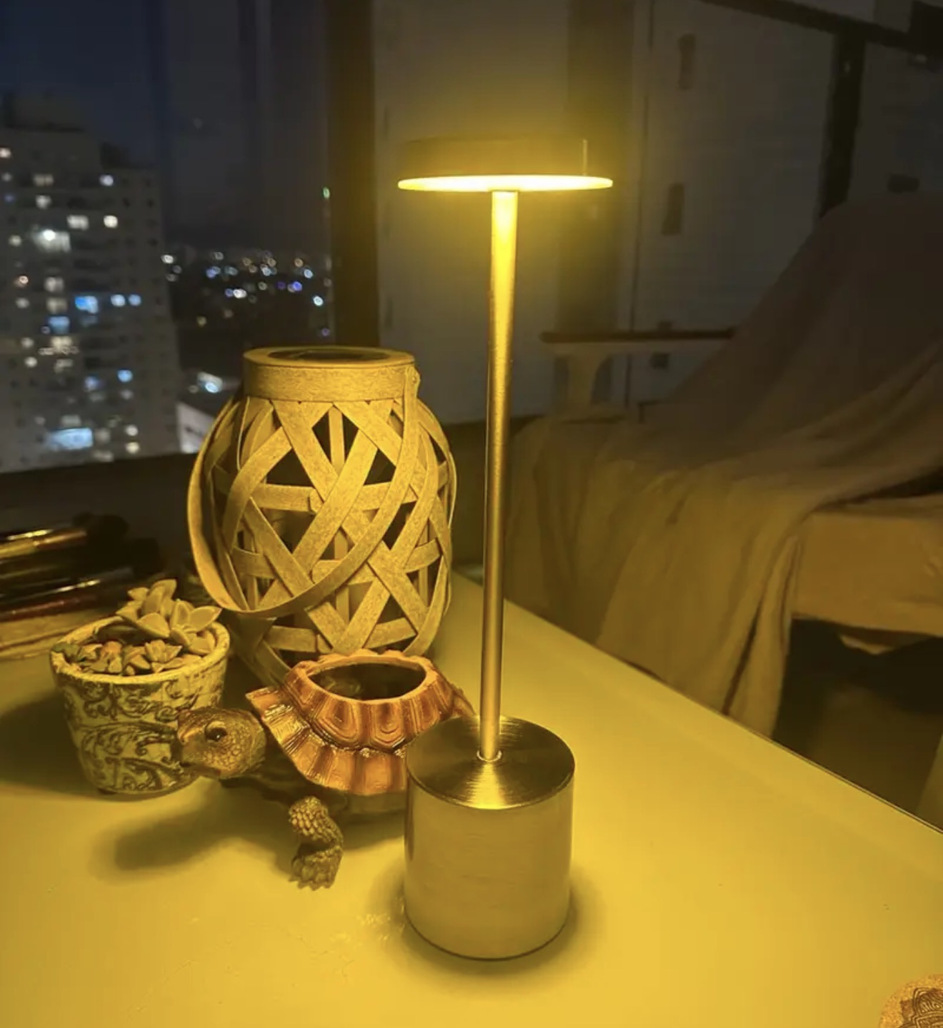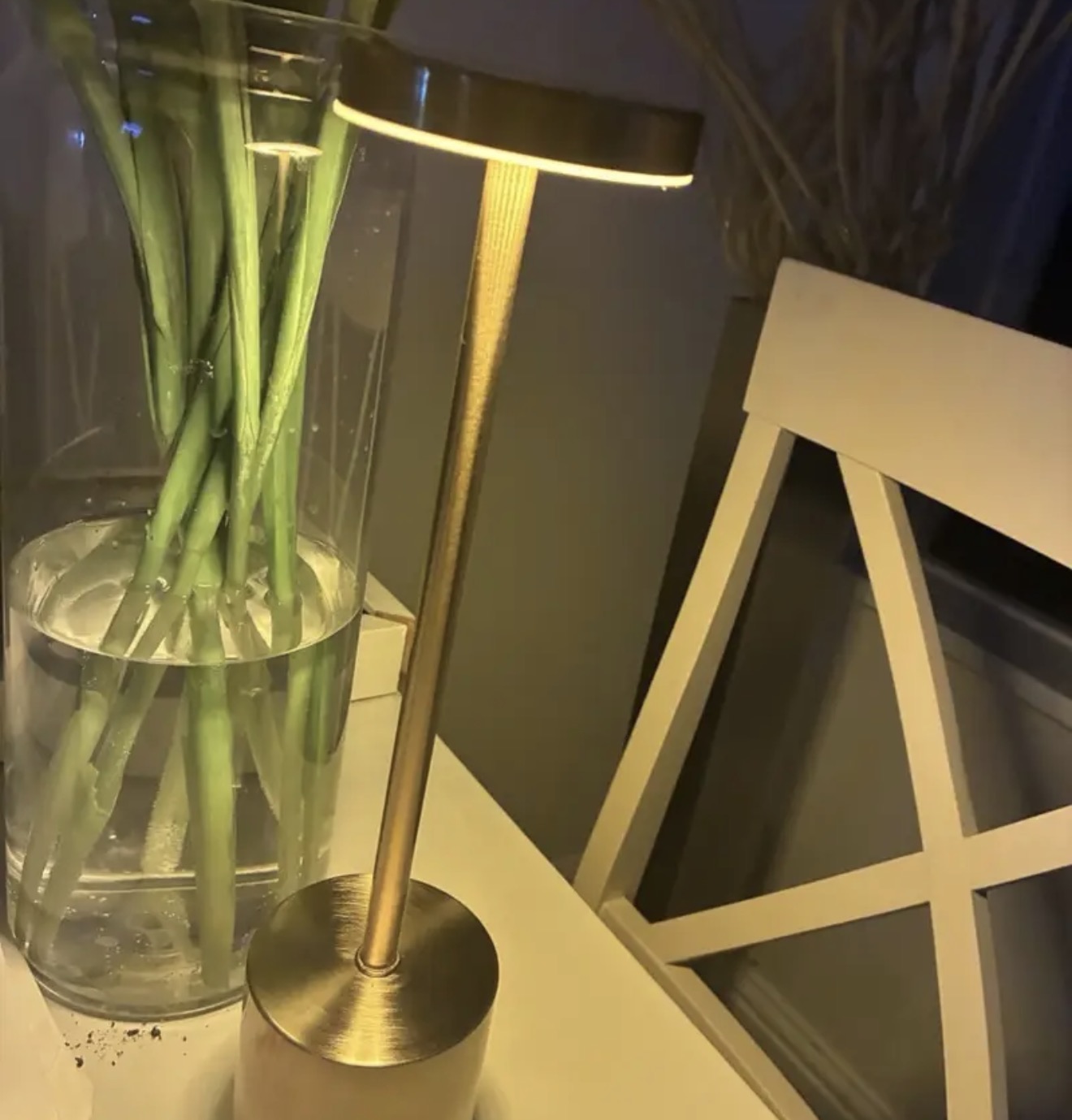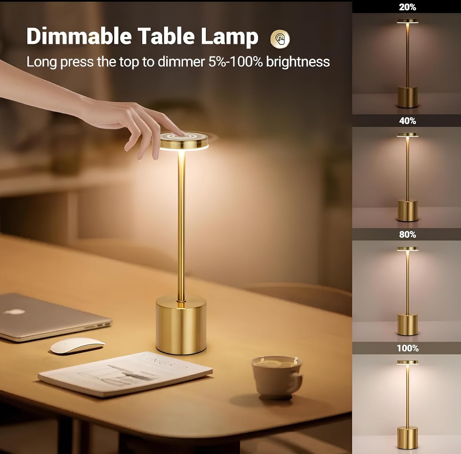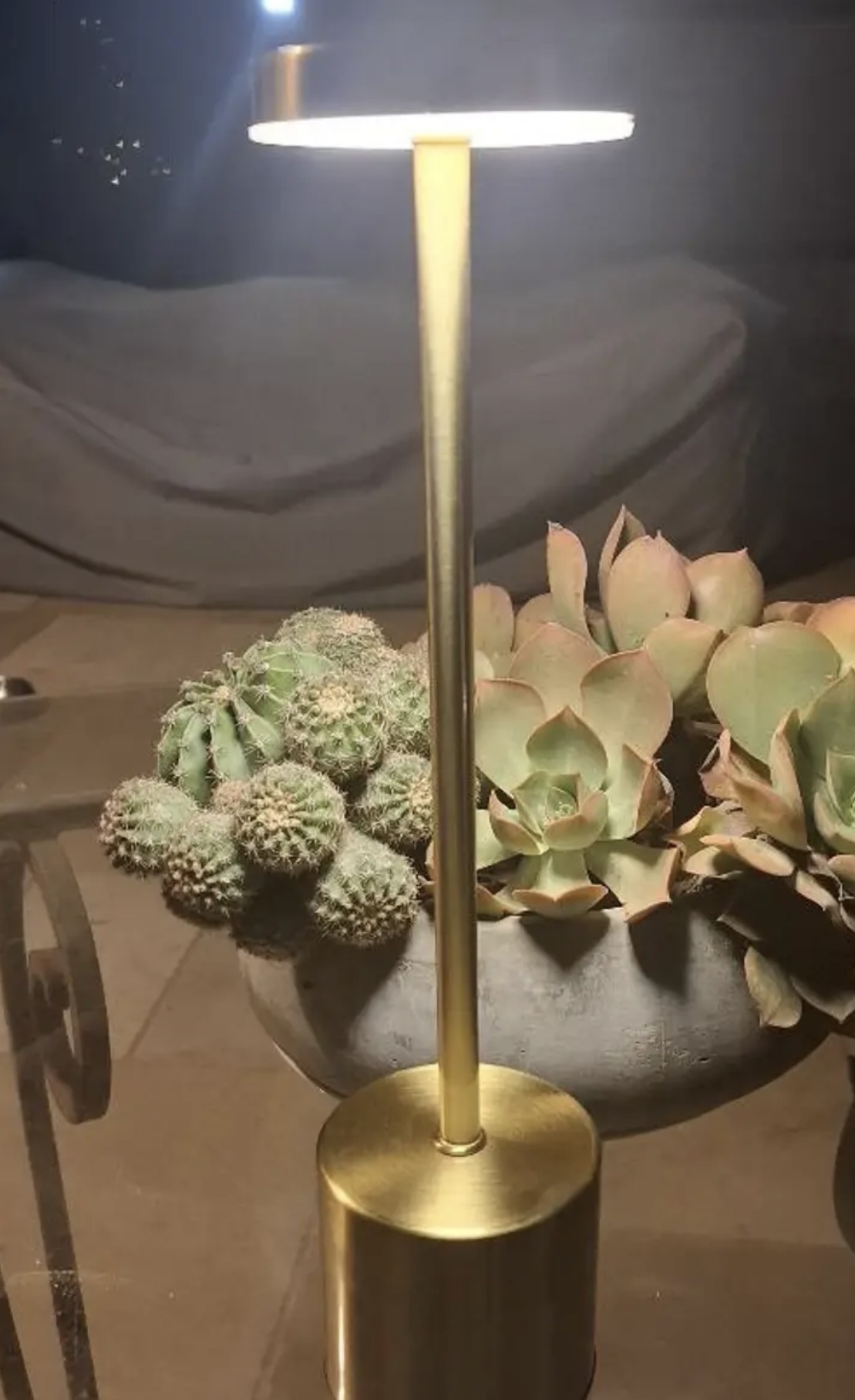Izdelana iz nerjavečega jekla z elegantnim okroglim senčnikom ta minimalistična svetilka združuje eleganco in praktičnost. Kompaktna in lahka zasnova omogoča enostavno premikanje, medtem ko polnilna baterija zagotavlja prilagodljivo, brezžično uporabo kjerkoli potrebujete dodatno svetlobo.