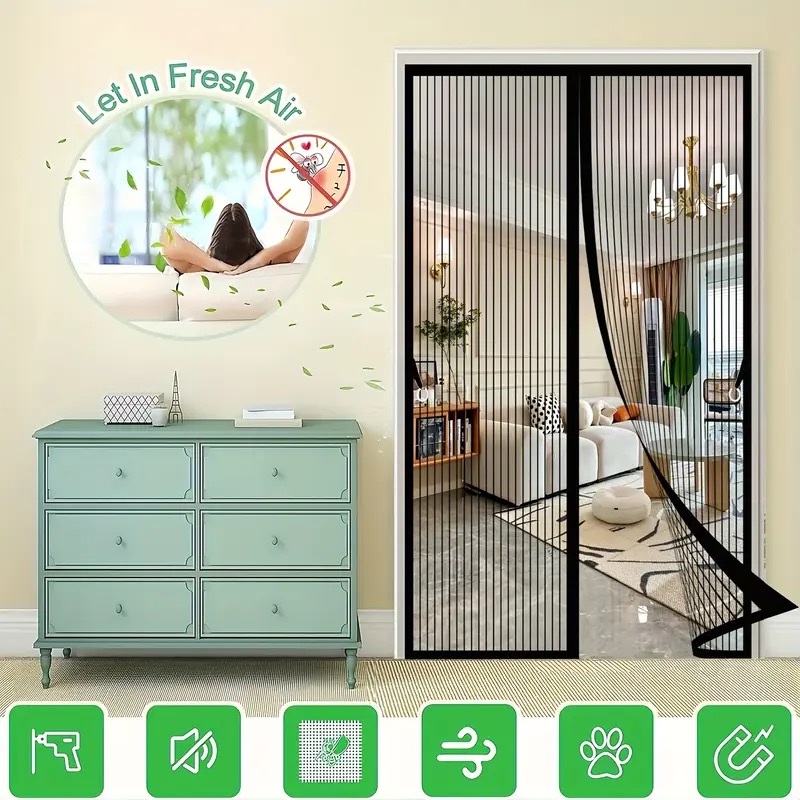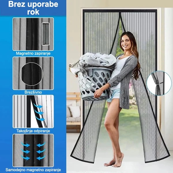 Močni vgrajeni magneti poskrbijo, da se mreža samodejno zapre za vami – idealno za otroke, hišne ljubljenčke in kadar imate polne roke!
