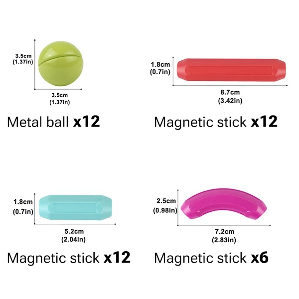 Magnetni gradniki spodbujajo domišljijo, prostorsko zavedanje, koordinacijo roka-oko ter fino motoriko. Otroci lahko brez omejitev ustvarjajo avtomobile, živali, hiše ali katerokoli obliko, ki si jo zamislijo.