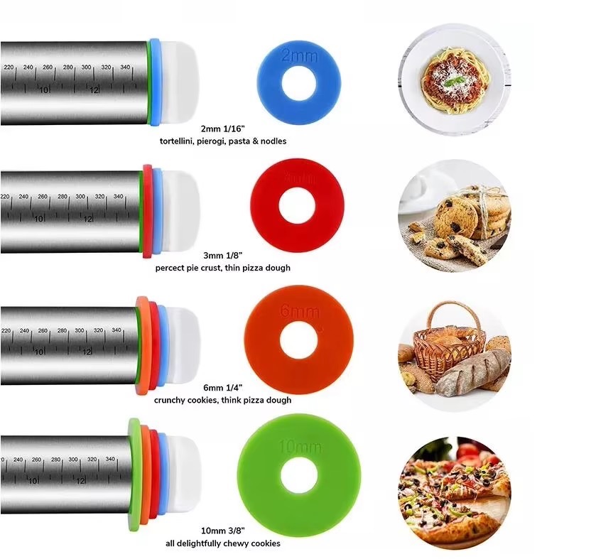 Prevzemite popoln nadzor nad svojim peko! Oklagija vsebuje štiri komplete zamenljivih diskov (2mm, 4mm, 6mm in 10mm), ki vam omogočajo valjanje testa na želeno debelino z izjemno natančnostjo. V kombinaciji z vgraviranimi merilnimi oznakami boste dosegali vedno enakomerne rezultate—ne glede na to, kaj pripravljate.