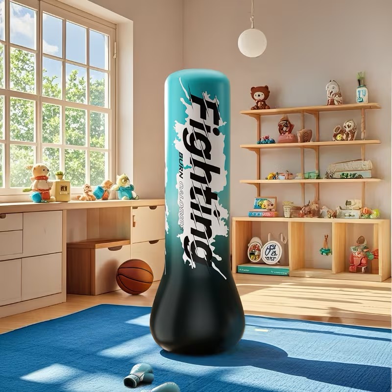 Ponudite svojemu otroku zabaven in varen način porabe energije s to mehko, vzdržljivo premetavajočo boksarsko vrečo. Zasnovana je za rešitev težave z bučno in nevarno igro, saj otrokom omogoča udarjanje, brcanje in treniranje brez poškodb, hrupa ali težke opreme — popolno za stanovanja in uporabo v zaprtih prostorih.