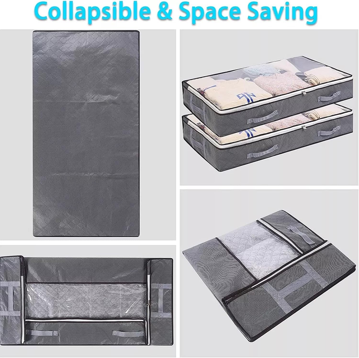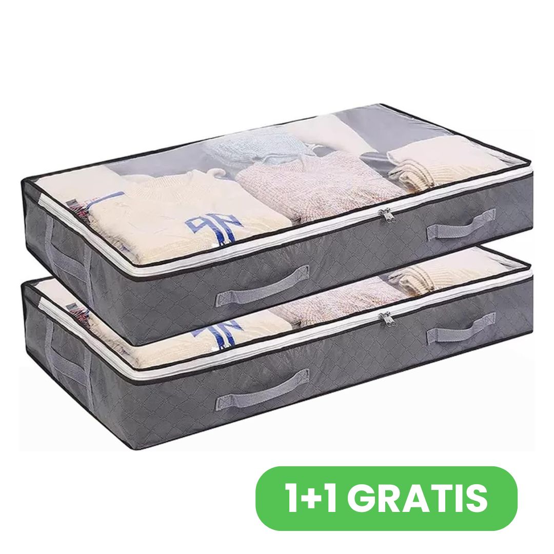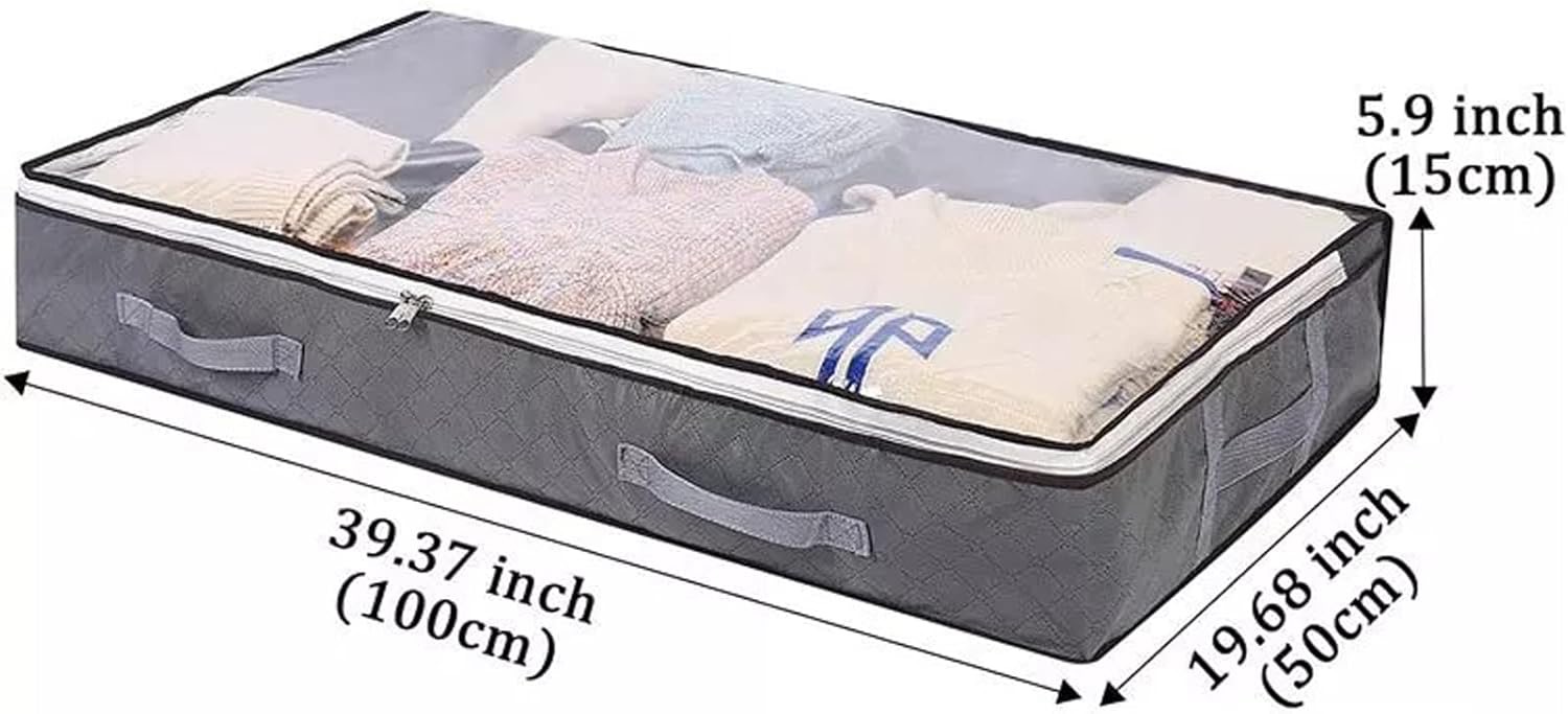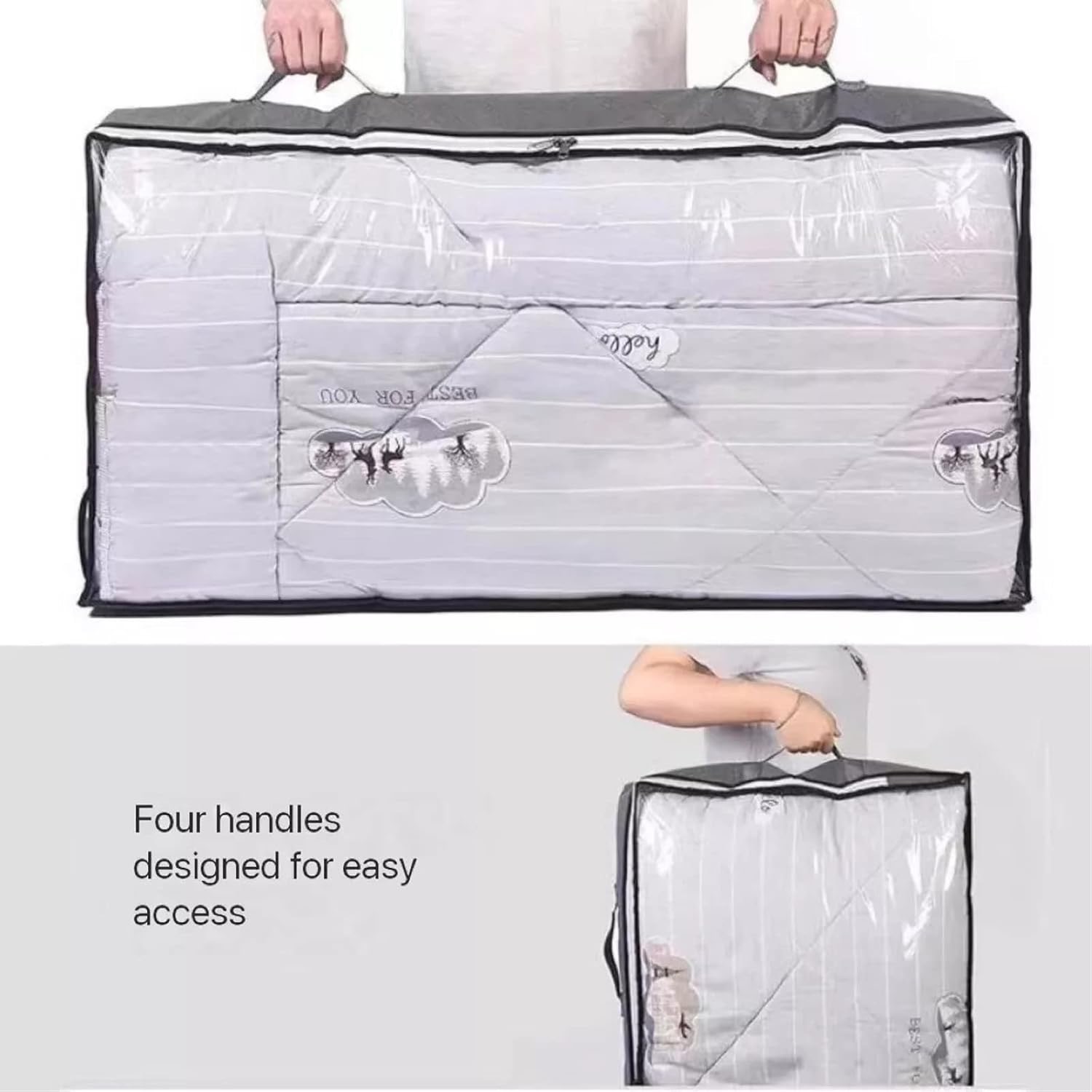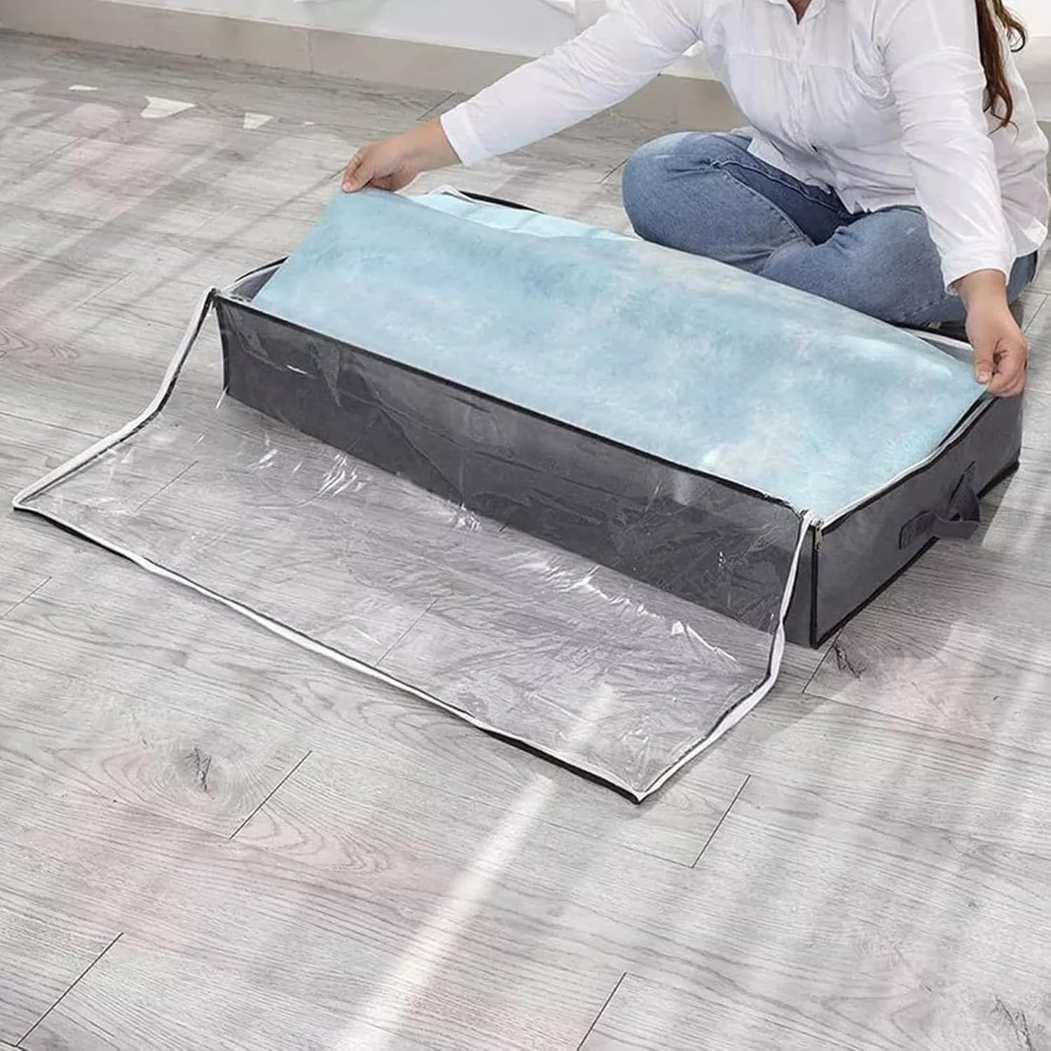 Vreča ima praktične ročaje za preprosto izvlečenje izpod postelje, ojačano zadrgo in prozorno okno, da že na prvi pogled vidite, kaj je shranjeno v notranjosti. Ko je ne uporabljate, jo lahko zložite na ravno in prihranite prostor.