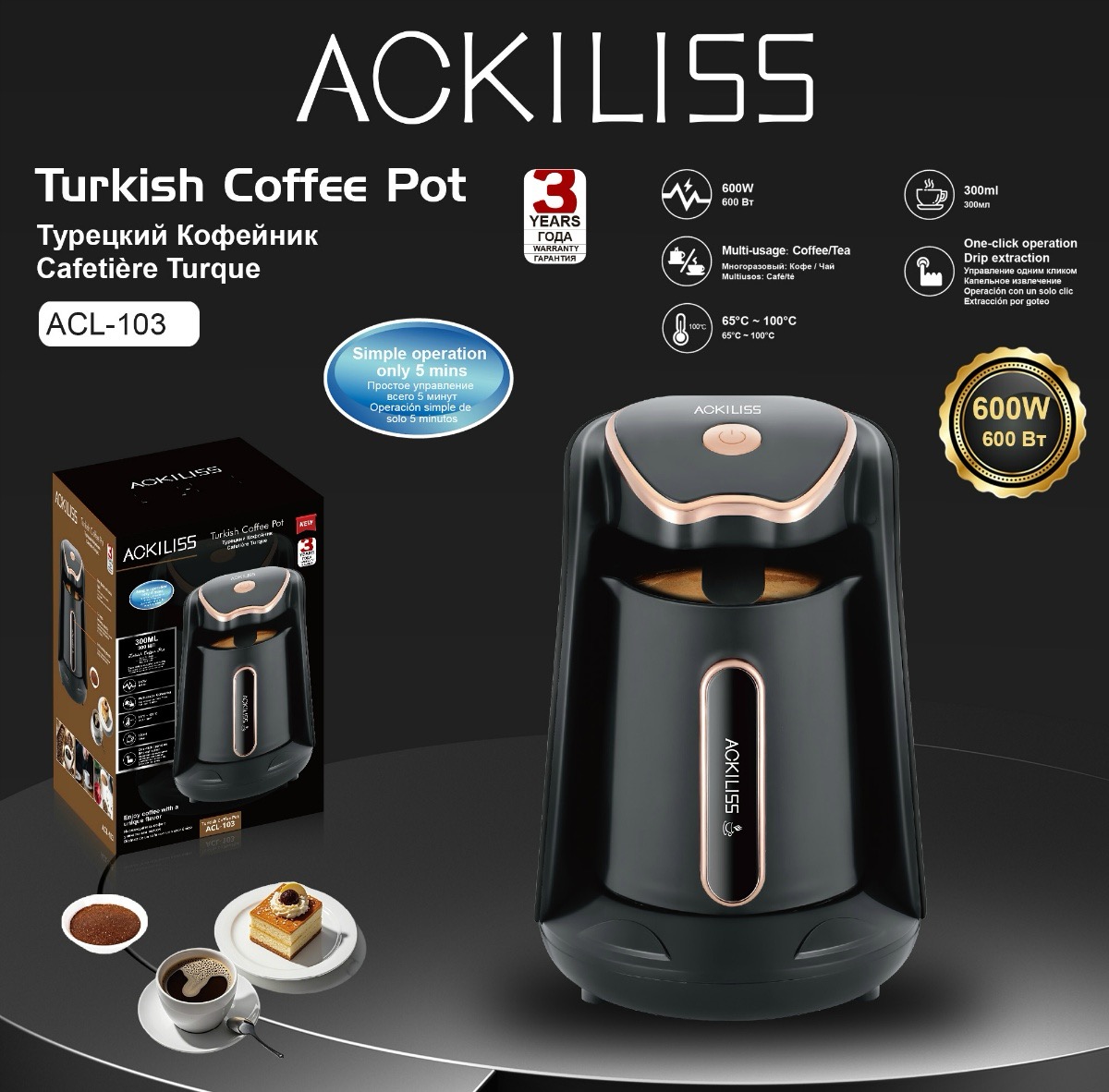 Zahvaljujoč močnemu, hitremu segrevanju ta aparat segreje vodo do idealnega temperaturnega območja za turško kavo, pri čemer ohrani njeno polno aromo in okus. Omogoča vam uživanje v sveže pripravljeni kavi, kadar koli si jo zaželite, brez čakanja.