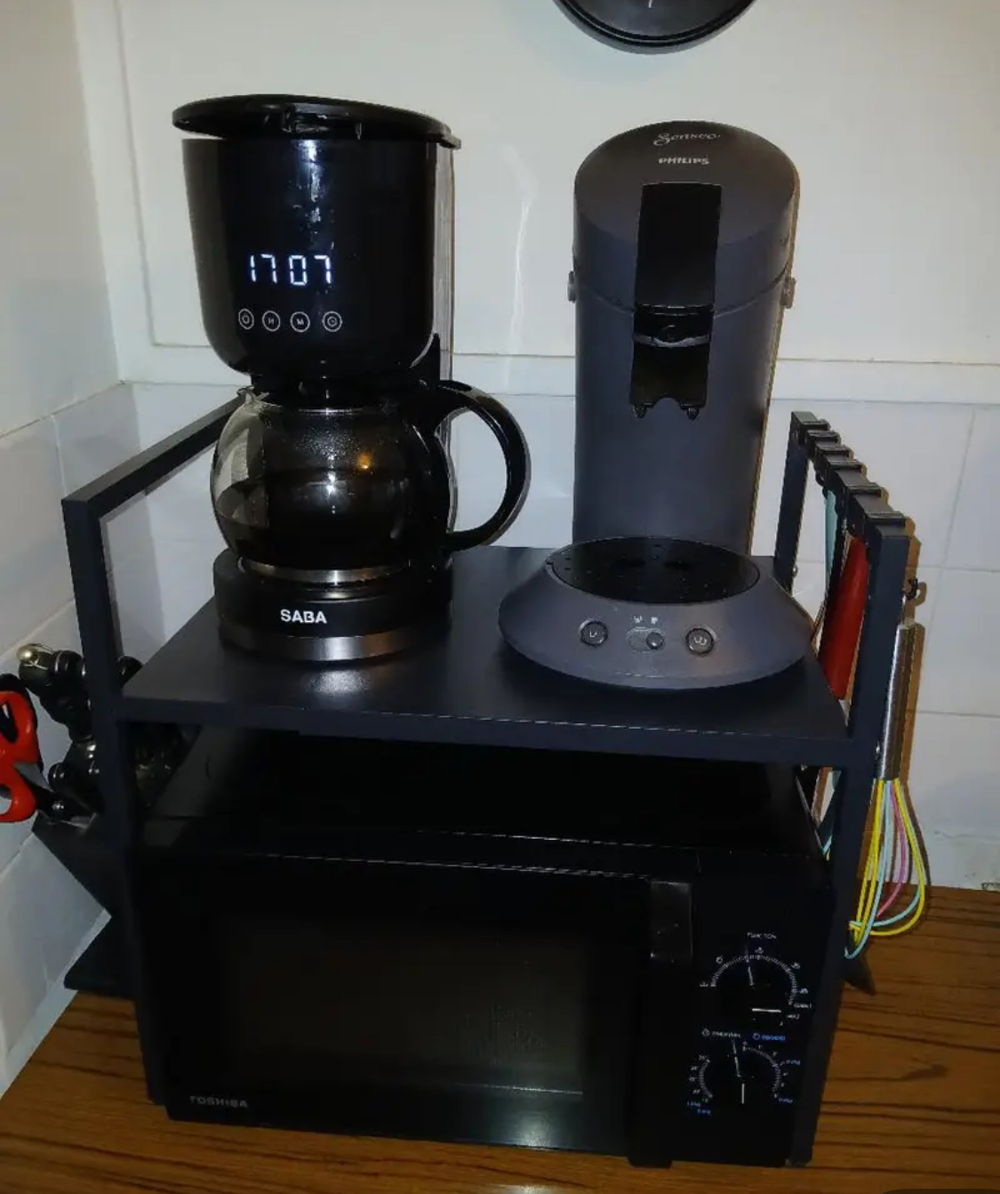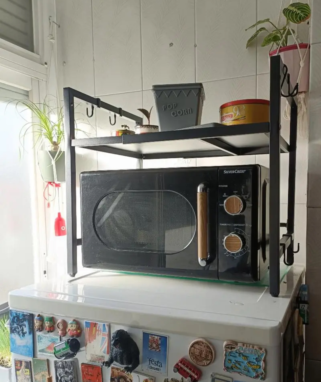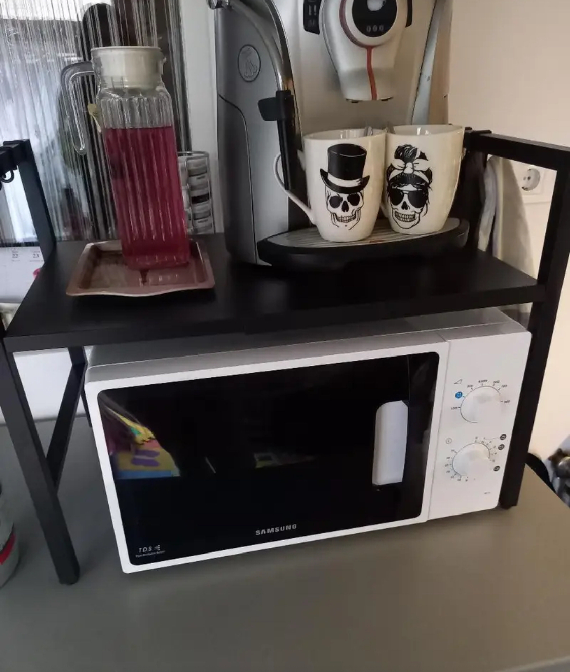 Maksimirajte prostor v svoji kuhinji z raztegljivo polico SHELFY! 🏡✨ Ta stabilna polica, enostavna za namestitev, je zasnovana za držanje vaše mikrovalovne pečice, kuhinjskih potrebščin in še več—pomaga vam ohraniti vse organizirano in na dosegu roke.