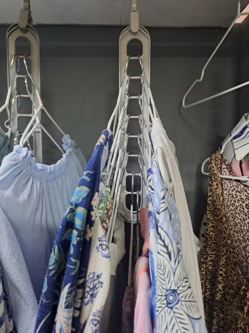 Kavelj, ki se lahko vrti za 360°, vam omogoča popolno svobodo prilagajanja in obešanja oblačil v katero koli smer — idealno za hiše, stanovanja in celo trgovine z oblačili. Primerni za mokra in suha oblačila so ti obešalniki popolni za sušenje, organizacijo in shranjevanje garderobe v zaprtih prostorih ali na prostem, pri čemer ostane urejena in brez gub.