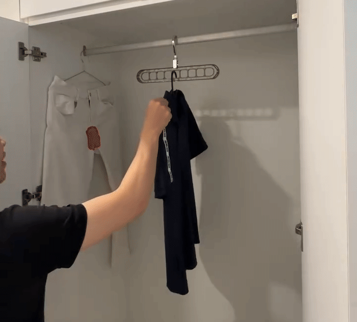 Vsak obešalnik iz seta PROHANG ima 9 utorov, ki omogočajo, da več kosov oblačil obesite navpično in tako sprostite tudi do trikrat več prostora v omari. Ne glede na to, ali jih uporabljate vodoravno za lažji dostop ali navpično za kompaktno shranjevanje, vam ti obešalniki pomagajo ohranjati oblačila organizirana, brez gub in zlahka dosegljiva.