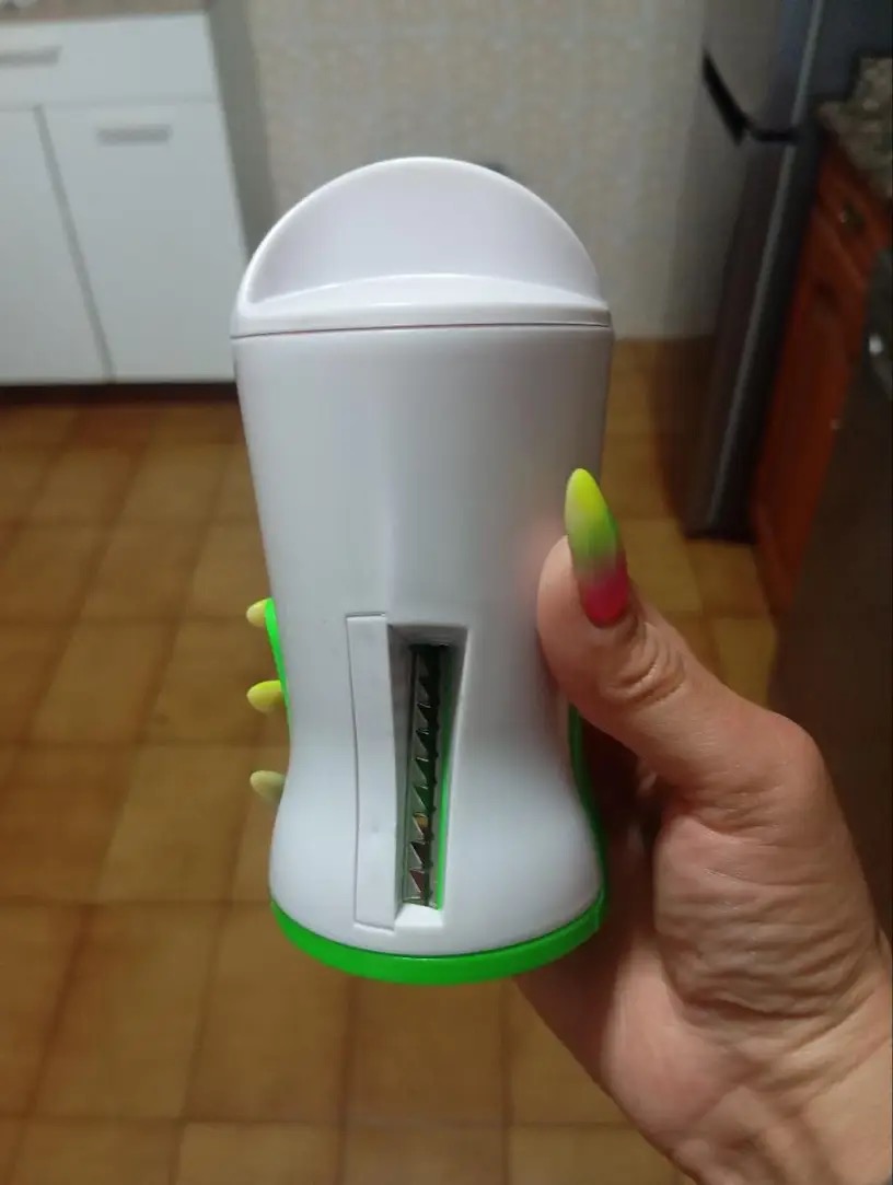 Izdelan iz visokokakovostnega nerjavečega jekla in ABS materiala je spiralni rezalnik trden, odporen proti rji in dolgotrajen. Kompaktna ročna zasnova omogoča varno in enostavno uporabo kadar koli.