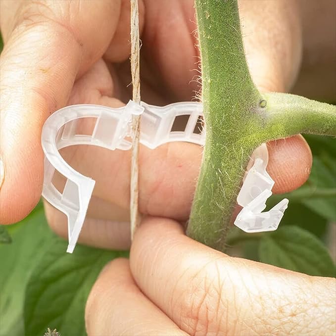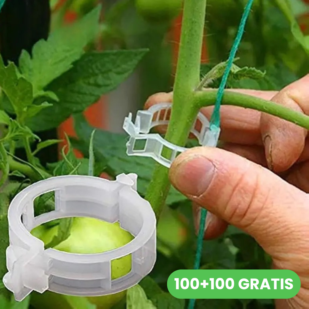 Preprosto pritrdite stebla na opore ali druge rastline za hitro in učinkovito fiksiranje. Z naborom 100+100 GRATIS prejmete dodatne sponke, s katerimi brez truda obvladujete večje vrtove in več rastlin.