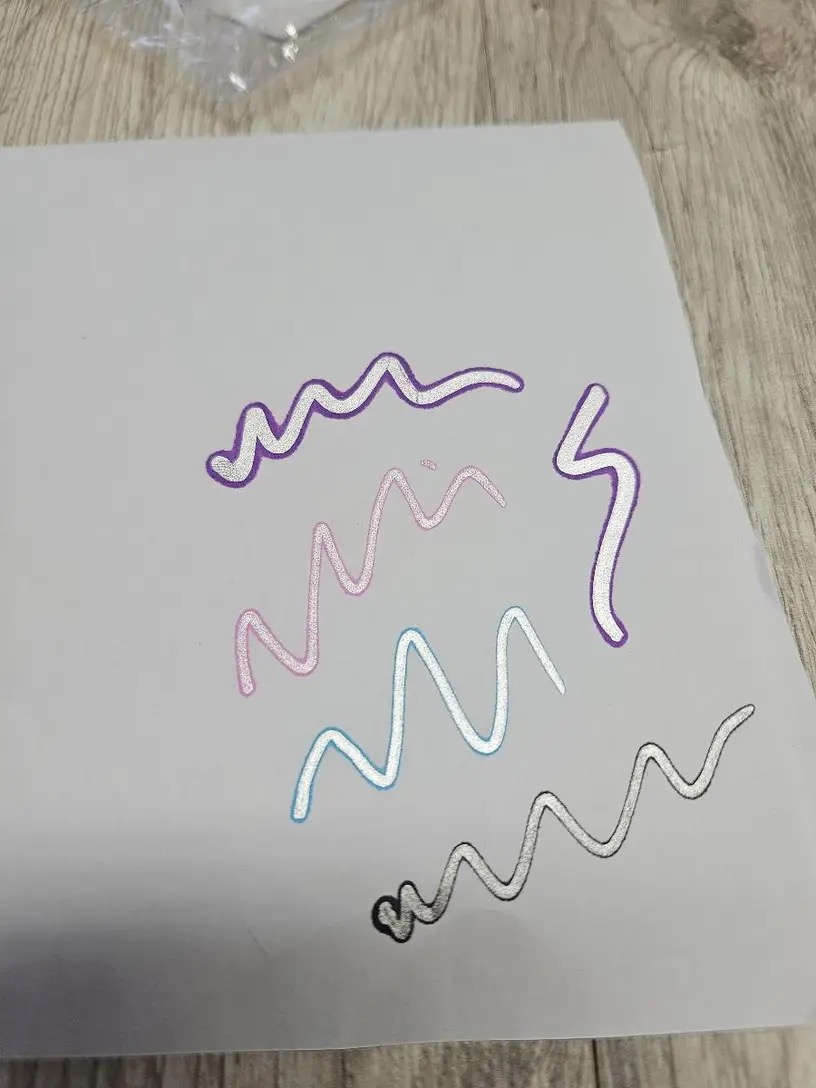 Vsak poteg ustvari sijočo srebrno sredino, obdano z barvitim robom, kar vašemu pisanju in risbam doda poseben 3D videz. Preprosto pretresite, pripravite konico in začnite ustvarjati čudovite, podrobne motive v samo nekaj sekundah.