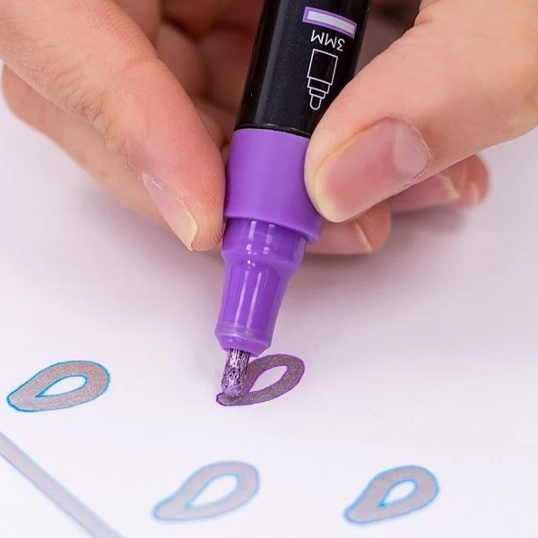 Vsak poteg ustvari sijočo srebrno sredino obdano z intenzivno barvo, zaradi česar so vaša pisanja in risbe videti izjemno in v 3D učinku. Preprosto pretresite, pripravite konico in v nekaj sekundah začnite ustvarjati čudovite, podrobne učinke.