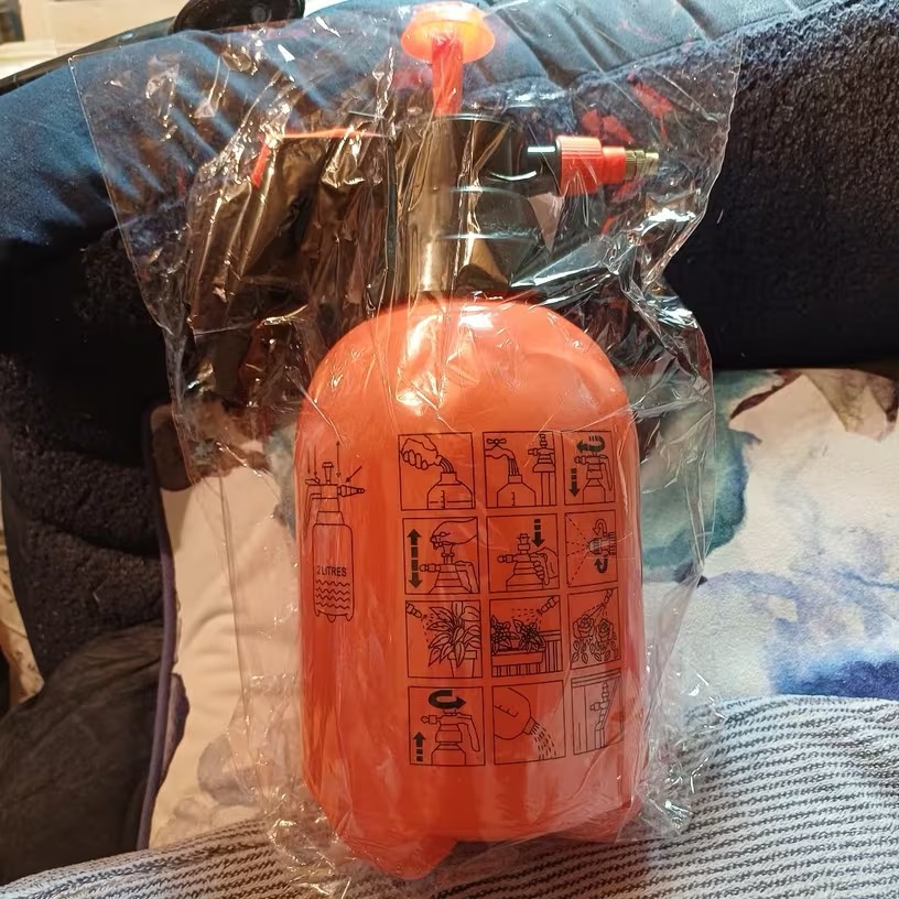 Ergonomska zasnova s sistemom ročnega tlačenja zagotavlja neprekinjen razpršek brez napora in brez potrebe po elektriki.