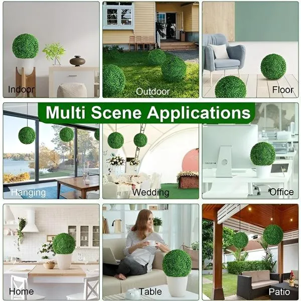 Pozabite na težave z vsakodnevno nego rastlin! Te umetne rastlinske krogle so zasnovane tako, da izgledajo osupljivo v vsakem okolju, tako v zaprtih prostorih kot na prostem. Uživajte v živahni zeleni barvi skozi vse leto, brez skrbi, da bodo ovenele ali se posušile. Te okrasne rastlinske krogle so idealne za vrt, teraso, dnevno sobo ali pisarno, saj bodo dvignile vsako okolje brez kakršnega koli truda!