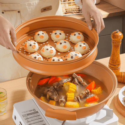 Lončena ponev ni namenjena le pečenju – v njej lahko cvrete, dušite, kuhate in celo kuhate na pari. Ta edinstvena ponev nadomešča več kosov posode in prihrani prostor v vaši kuhinji. Idealen za pripravo raznolikih jedi.
