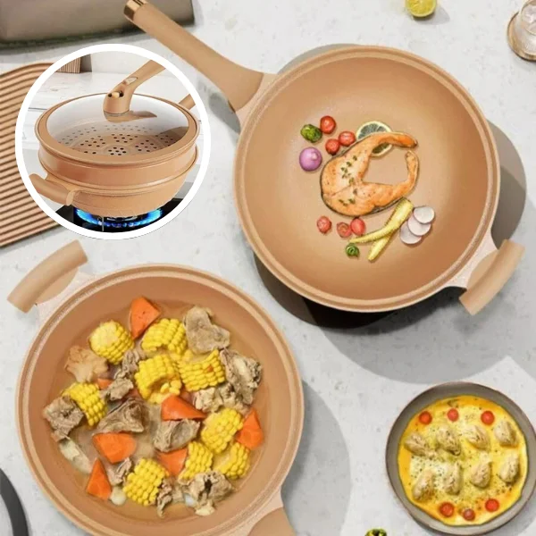 🍲 Večnamenski lonec PROWOK – kuhanje, cvrtje, dušenje in kuhanje v enem 💨 Mikro tlačna tehnologija za hitrejše in enakomernejše kuhanje 🧽 Enostavno čiščenje s trpežnim nelepljivim premazom 🔥 Dolga življenjska doba – vzdržljiv lončeni material