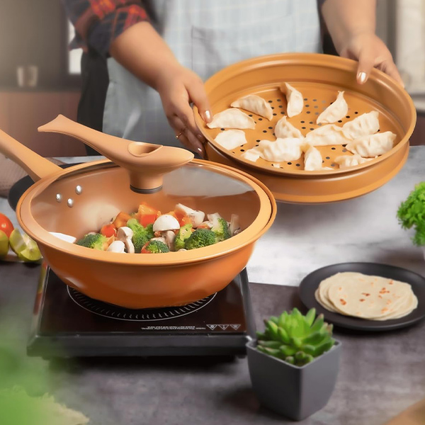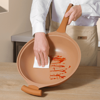 Napredna zasnova dna ponve omogoča hitrejše in enakomernejše segrevanje, kar zmanjšuje čas kuhanja. Mikro tlačna tehnologija izboljša prehajanje okusov, zaradi česar so jedi bolj sočne in aromatične. Z PROWOK bodo vaše jedi vedno popolno pripravljene.