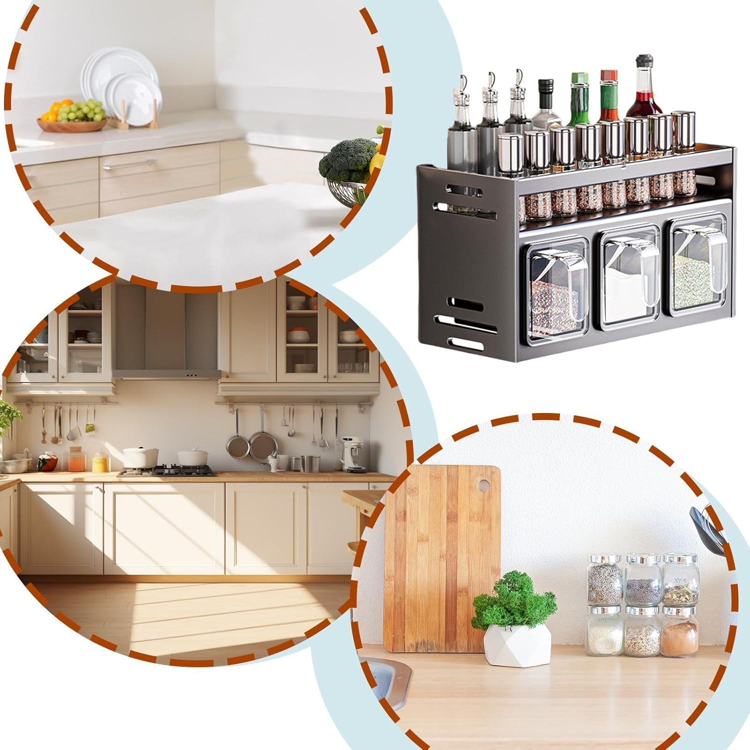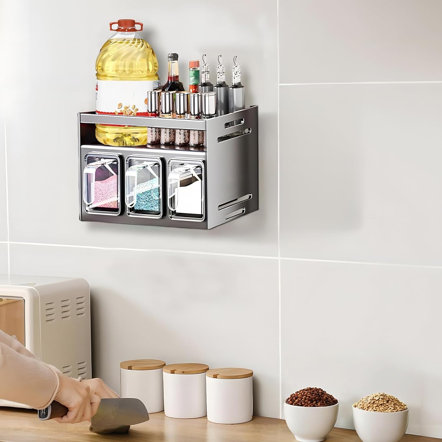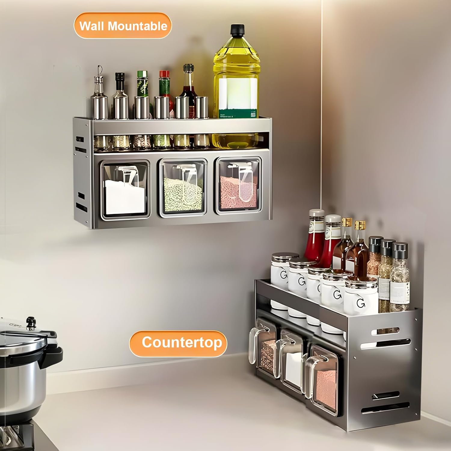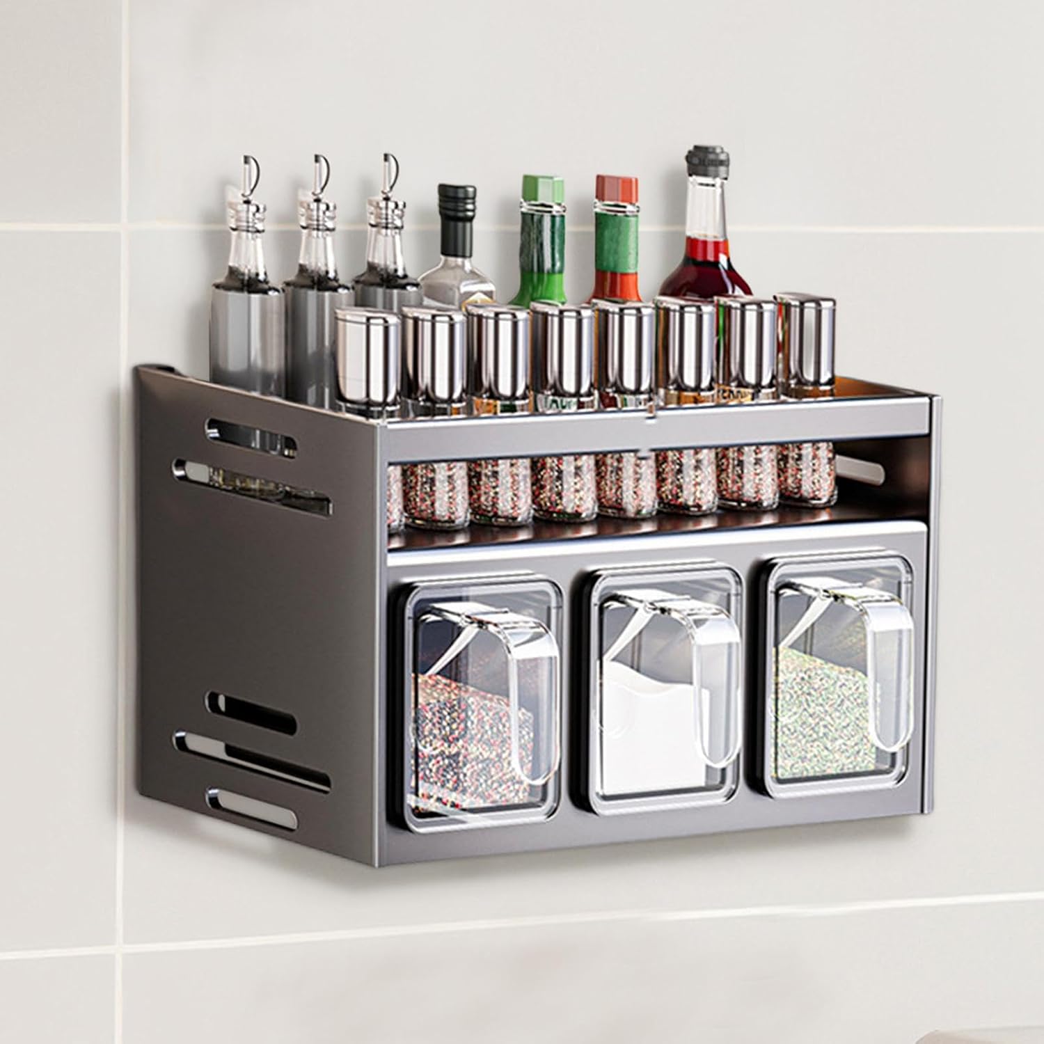 Dizajn z dvojnim slojem omogoča več prostora in popoln pregled nad vsemi stekleničkami in posodicami. Shranjevanje je enostavno, začimbe pa imate vedno pri roki, kar izboljša vašo kulinarično izkušnjo.